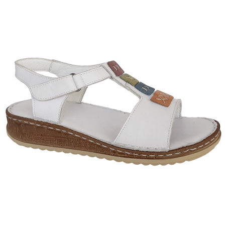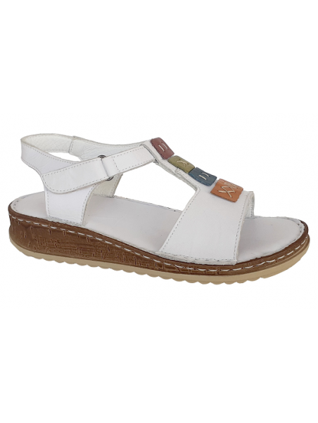 Γυναικείο δερμάτινο ανατομικό σανδάλι σε άσπρο χρώμα τς εταιρείας Aerostep .Κλείνει στον αστράγαλο με σκρατς.