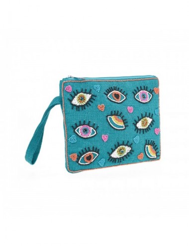 Verde Γυναικείο Αμπιγέ Τσαντάκι 01-1790 Γιούτα Τιρκουάζ