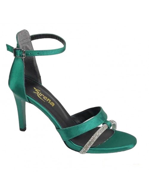 Γυναικείο πέδιλο της εταιρείας sirena , σε σατέν πράσινο ύφασμα και εντυπωσιακά στρας . Κομψό και θηλυκό σχέδιο .Διαθέτει κλειστή φτέρνα για μεγαλύτερη σταθερότητα. Κλείνει με μπαρέτα στον αστράγαλο .Μια άνετη και παράλληλα κομψή επιλογή για τις βραδινές σας εμφανίσεις.