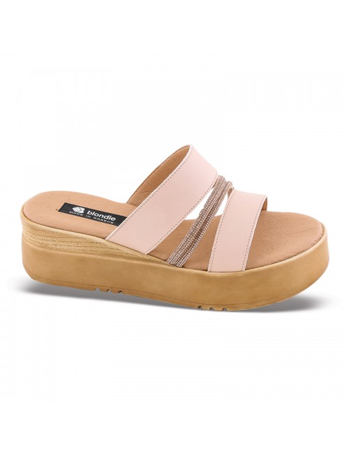Γυναικεία παντόφλα πλατφόρμα  της εταιρείας BLONDIE ελληνικής κατασκευής. Διαθέτουν φάσα και λωρίδες στρας. Έχει πολύ μαλακό πάτημα χάρη στην αφρώδη εσωτερική επένδυση. Εντυπωσιακό και άνετο πέδιλο ,από το πρωί έως το βράδυ.