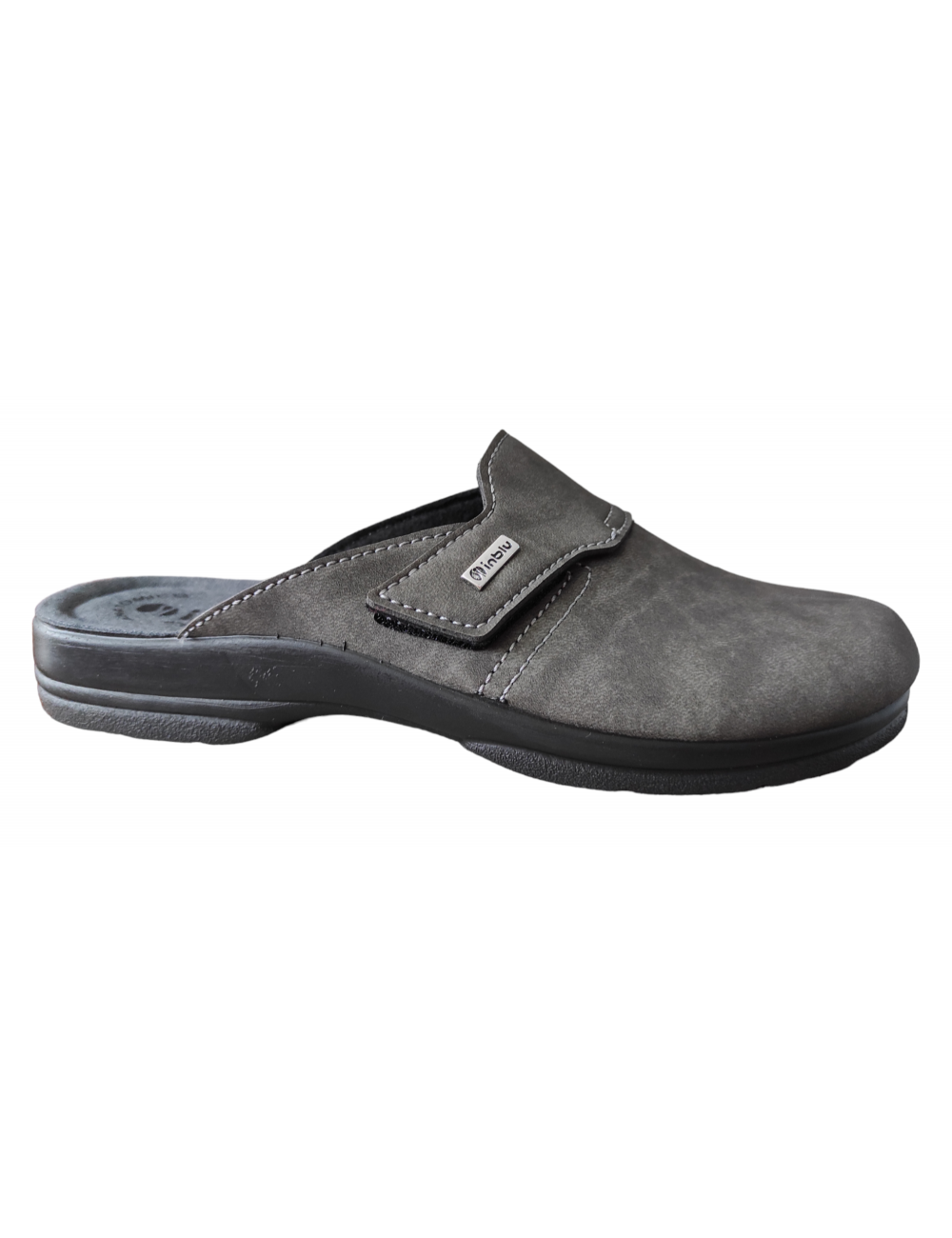 Ανδρική παντόφλα δέρμα πάνω Inblu σε γκρι χρώμα .Διαθέτει αντιολισθητική και εύκαμπτη σόλα. Ελαφριά και ζεστή παντόφλα